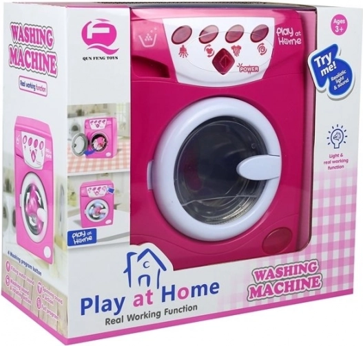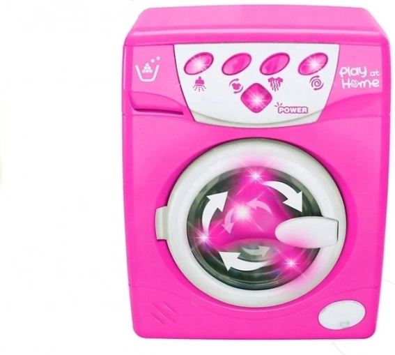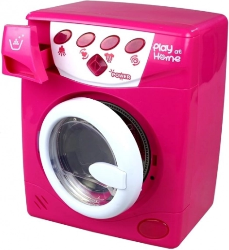 Geweldige pret, een realistische en perfect uitgevoerde wasmachine voor de kleine huisvrouw. Nu kan elk meisje zorgen voor de kleertjes van haar favoriete poppen en knuffelberen. Leg de kleren gewoon in de wasmachine, kies het juiste programma (wassen, spoelen, centrifugeren) en klaar!