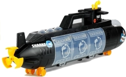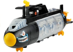 Het speelgoed bestaat uit een zwarte constructie gecombineerd met gele details en stickers, en een transparant gedeelte met vakken voor voertuigen. Eén zijde is gevuld – in ieder compartiment bevindt zich een interessant voertuig dat het spel zeker zal verrijken. De andere zijde van de sorteerder is leeg, zodat je kind zijn favoriete autootjes op één plek kan opbergen. Het speelgoed staat op kleine zwenkwieltjes, zodat je er mee kunt spelen terwijl het over de vloer rijdt. De onderzeeër heeft veel details die de indruk wekken dat het om een kleine kopie van een volwaardige machine gaat. Je kunt de scheepsschroef bekijken, geplaatst aan het uiteinde van de constructie, evenals de periscoop, waarmee je kunt volgen wat er boven het wateroppervlak gebeurt. De transparante sorteerder is versierd met raampjes, wat er fantastisch uitziet. Het hoofditem is samen met de meegeleverde voertuigen gemaakt van duurzaam en vooral stevig kunststof dat bestand is tegen beschadigingen die tijdens het spelen kunnen ontstaan.