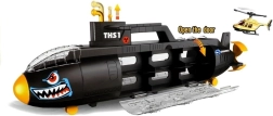 Een grote onderzeeër die op een dreigende haai lijkt, verbergt tal van interessante elementen. Wat zit erin? Auto’s van verschillende types en een helikopter! De onderzeeër met een dubbelzijdige sorteerder is een fantastisch cadeau voor een kind dat van voertuigen en onderwatermachines houdt.