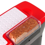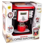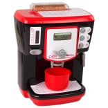 De zwart-rode koffiemachine is een echt interessant speeltje. Qua uiterlijk is hij gestileerd naar moderne automaten, waardoor hij gerust in de keuken naast het echte apparaat kan staan. Het speelgoed is uitgerust met een knop om het type te bereiden koffie te wisselen – Cappuccino, Latte en Macchiato. Aan de linkerkant van het apparaat zit een reservoir; na het omzetten met de knop begint er water uit de automaat te stromen! Aan de rechterkant zitten knoppen die verschillende modi van de koffiemachine simuleren. De set is ook voorzien van een imitatie van koffiebonen in de hopper en een kopje dat met de machine kan worden gevuld.
