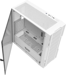 Bouw een systeem dat zowel games als professioneel werk aankan. De DarkFlash DK431 Mesh combineert een elegante, minimalistische look met doordachte functionaliteit: een te openen zijpaneel van gehard glas voor snelle toegang, vloeiende airflow dankzij perforaties en brede compatibiliteit met E-ATX/ATX/M-ATX-moederborden. De transparante zijwand accentueert uw componenten en RGB-verlichting.