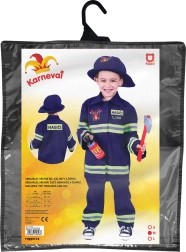 Verander een kleine held in een brandweerman in een handomdraai! Dit kostuum bevat een blouse met het opschrift HASIČI, broek en een pet. Maat M (6–8 jaar, 117–128 cm) met Tsjechische opdruk is ideaal voor carnaval, verkleedpartijen en kinderfeestjes.