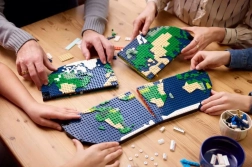 Verfijn je creativiteit met de familieset LEGO Reisherinneringen, die een wereldkaart en een vliegtuig om te bouwen omvat.
