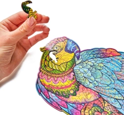 Deze houten puzzel in de vorm van een papegaai brengt plezier en uitdaging voor alle puzzelliefhebbers. Geschikt voor kinderen vanaf 14 jaar en dient niet alleen als speelgoed, maar ook als decoratief object. Elk stuk is uniek en geeft je interieur levendigheid dankzij de kleurrijkheid.