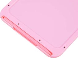 Dankzij het lichte en slanke ontwerp (ca. 25 × 14,5 × 0,9 cm) past de tablet in een rugzak of handtas. De ingebouwde stylushouder voorkomt verlies en de rubberen oortjes geven een speelse look en fijne grip. Voeding via een CR2025-batterij (inbegrepen).