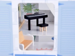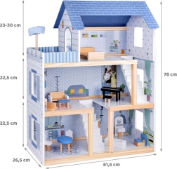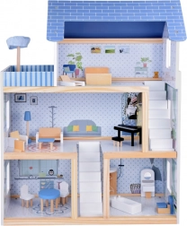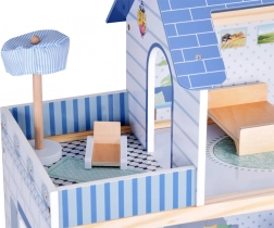Een houten poppenhuis is de vervulling van de droom van elk meisje. Zeker als ze geen liefhebber is van felle kleuren: dit ingetogen, blauw-getinte huisje zal haar zeker bevallen.