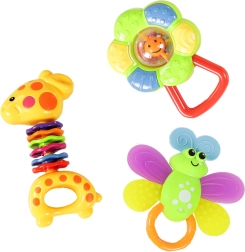 Ontdek de magie van kleurrijke rammelaars waar uw baby meteen dol op zal zijn! Deze set van drie schattige rammelaars zorgt niet alleen voor plezier, maar stimuleert ook de motorische en visuele vaardigheden.