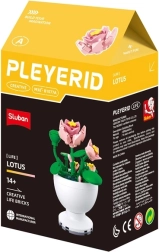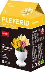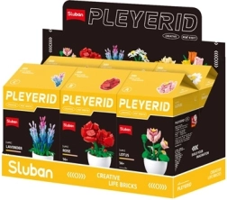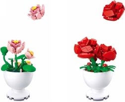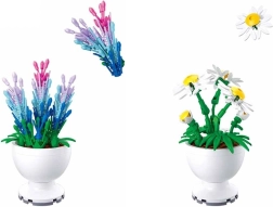 Ontdek de innovatieve Sluban-bouwset met zes verschillende bloemsoorten, waaronder roos, lavendel, margriet, lotus, pioenroos en tulp. Elke bloem staat in een witte bloempot, wat een betoverende decoratie vormt.