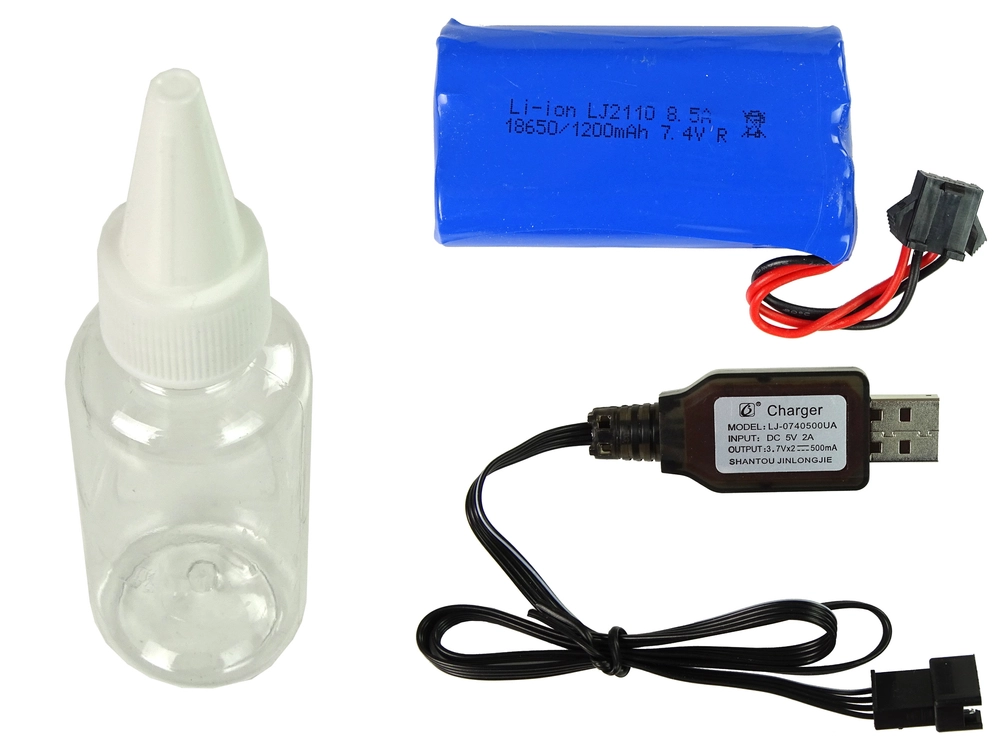 Het voertuig wordt gevoed door een 7,4 V 1200 mAh batterij, de controller door twee 1,5 V “AA”-batterijen (niet inbegrepen). Geschikt voor kinderen ouder dan 3 jaar. De set heeft een CE-certificaat en voldoet aan de EN 71-norm.