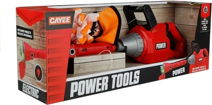 kinder elektrische kettingzaag met geluid en bewegende ketting + veiligheidsbril