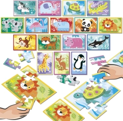 Verander puzzelen in een actievol spel! De set Educa puzzelstrijd Dierenvriendjes brengt snelle mini-duels waarbij spelers zo snel mogelijk hun dierenpuzzel leggen aan de hand van de voorbeeldkaartjes. Elke puzzel heeft slechts 9 stukjes, dus ideaal voor korte maar intense speelrondes.