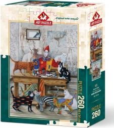 Stijlvolle puzzel met het motief van kleurrijke katten van ART PUZZLE met 260 stukjes en een afmeting van 34 × 48 cm na het leggen. Verrast met precieze stansvormen en de mogelijkheid om gebruik te maken van de service voor het nasturen van een ontbrekend stukje door de fabrikant.