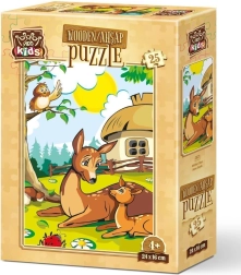 Ontdek een hoogwaardige houten puzzel met een reeënmoeder, perfect voor de eerste puzzelervaringen. Dankzij de stevige stukjes van dun maar veerkrachtig Afrikaans houten multiplex zijn ze gemakkelijk vast te pakken voor kinderen en gaat de puzzel lang mee, zelfs bij veelvuldig gebruik.