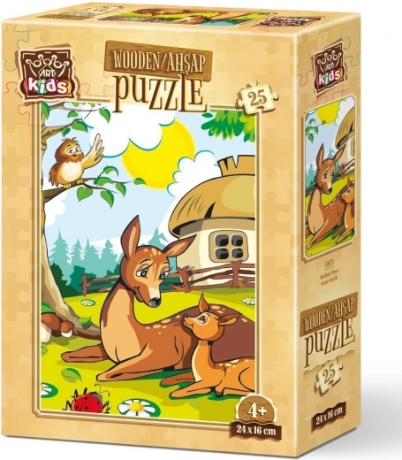 Een schattige houten puzzel met een reeënmoeder zal kleine natuurliefhebbers verrukken. De stukjes zijn gestanst uit veerkrachtig Afrikaans houten multiplex en vormen na het leggen een afbeelding van ca. 16 × 24 cm. Ideaal voor de ontwikkeling van fijne motoriek, geduld en visuele verbeelding. 25 stukjes, duurzaam houten multiplex, prachtig natuurtref.