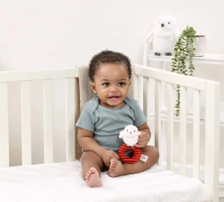 De lichte en zachte rammelaar is ideaal voor thuis, in de kinderwagen en op uitstapjes – altijd bij de hand voor rust en plezier.