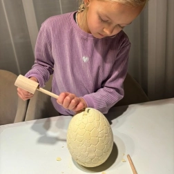 De set bevat een dinosaurus ei en houten gereedschap voor opgravingen, die zorgen voor een leuk en praktisch spel.