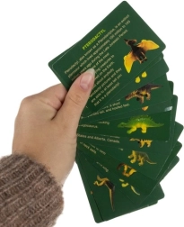 Leer over verschillende soorten dinosauriërs met kaartjes die namen en afbeeldingen van prehistorische wezens bevatten.