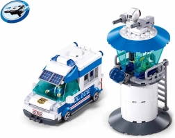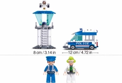 De set bevat 245 nauwkeurige onderdelen die kunnen worden opgebouwd tot een realistische politieopstelling met een auto en een toren.