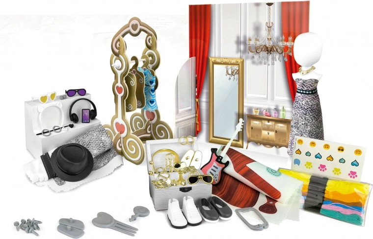 Verander je ideeën in werkelijkheid met het thema Gala nacht. Kinderen zetten de pop in elkaar, maken een kapsel van katoendraadjes en kleden haar in stijlvolle outfits. Stoffen kunnen worden geknipt volgens voorgedrukte patronen of naar eigen ontwerp – allemaal zonder naalden en garen, met eenvoudig bevestigen via kleine klemmetjes.