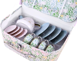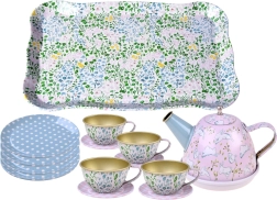 Een echt theesetje bedoeld voor kinderen om thuis, in een café of in een restaurantje te spelen.