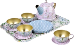 De set is van metaal gemaakt en bootst fantastisch echt tafel- en koffieservies na. Het thee- en koffieservies zorgt voor geweldig vermaak, gecombineerd met leren en ontdekken.