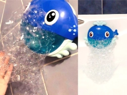 Deze magische badspeelgoed-walvis creëert rijke schuimbubbels en begeleidt ze met melodieën die elke kleine waterrat blij maken. Je schakelt de walvis eenvoudig in met de ON/OFF-knop in het oog en in een mum van tijd verandert het bad in een vrolijke show.