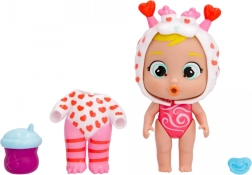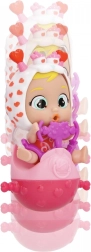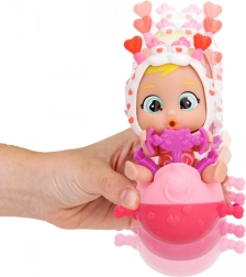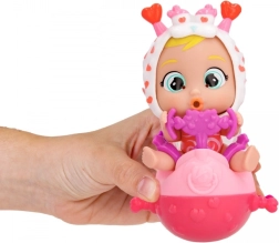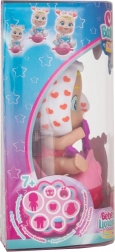 De interactieve pop Momo huilt kleurrijke tranen wanneer je op haar buikje drukt, wat een nieuwe dimensie aan het spel toevoegt.