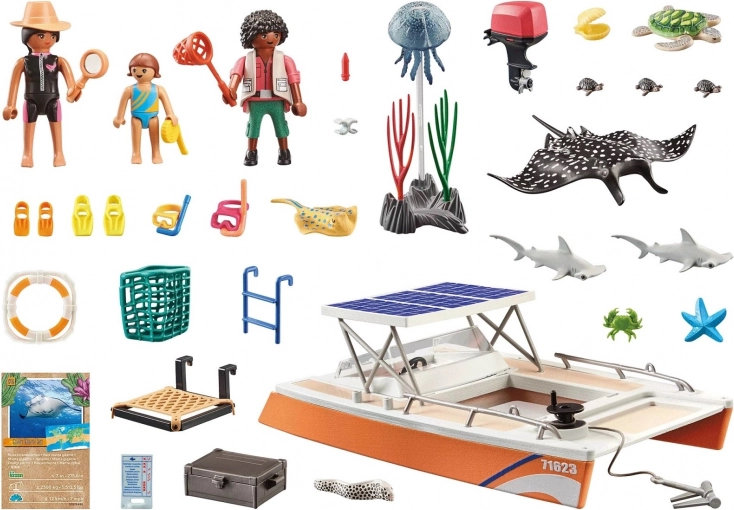 PLAYMOBIL WILTOPIA: verkenning van het koraalrif. Catamaran met glazen bodem, zonnepaneeldak, zeedieren. Duurzame bouwset.