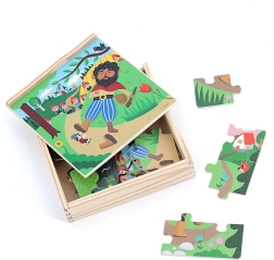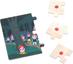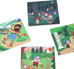 Deze set bevat 4 puzzels met 9 stukjes die het sprookje over Duimelijntje vertellen. Elke afbeelding is een prachtige weergave van het verhaal, prikkelt de kinderfantasie en verbetert concentratie en logisch denken.