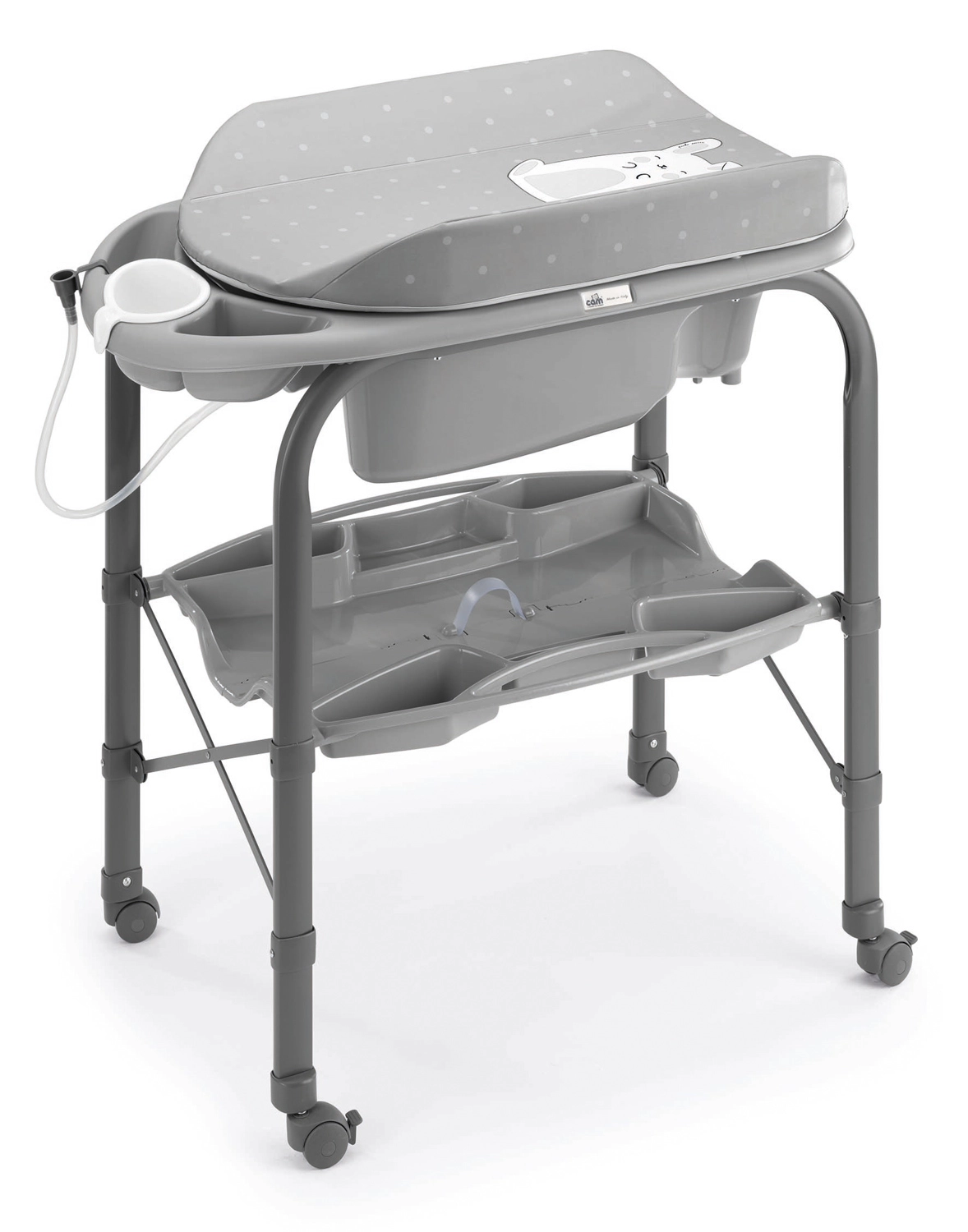 Commode Cambio is de ideale keuze voor ouders die een praktische en innovatieve oplossing zoeken voor de verzorging van hun baby, zelfs in kleinere badkamers. Dankzij het ultracompacte sluitsysteem kan hij eenvoudig worden ingeklapt en neemt hij weinig ruimte in. De Cambio is geschikt voor kinderen vanaf de geboorte tot 12 maanden en is voorzien van een zacht verschoningskussen voor maximaal comfort van de baby. De set bevat het Baby Bagno badje, ontworpen met twee anatomische antislip-inzetstukken – voor de kleinste baby’s van 0 tot 6 maanden is er een geïntegreerde ligpositie, terwijl voor kinderen van 6 tot 12 maanden de andere zijde is voorzien van een zitje met armleuningen. Voor extra comfort is de tafel uitgerust met een praktische afvoerslang voor het laten weglopen van water en opbergruimte voor zeep, washandje en andere benodigdheden.