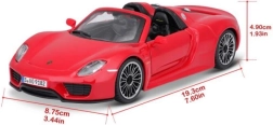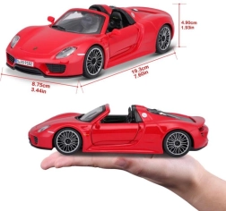 Modelauto Bburago Porsche 918 Spyder in schaal 1:24 is ideaal voor verzamelaars en kinderen om mee te spelen. Gedetailleerd ontwerp en metalen constructie zorgen voor een realistisch uiterlijk van deze sportwagen.