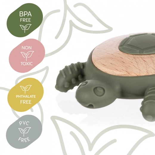 Je kleintje zal meteen dol zijn op onze schattige bijtring in de vorm van een schildpad, die natuurlijk hout combineert met veilige siliconen. De ideale metgezel tijdens het doorkomen van tandjes, die verlichting biedt en tegelijk de zintuiglijke waarneming van je baby stimuleert.