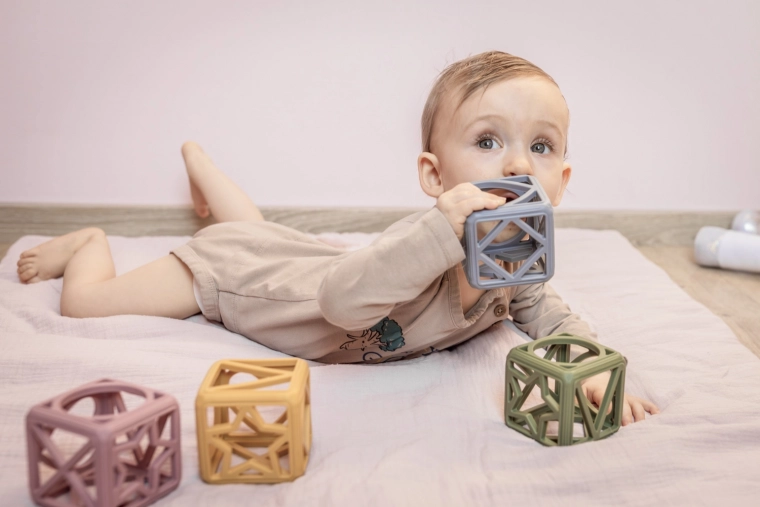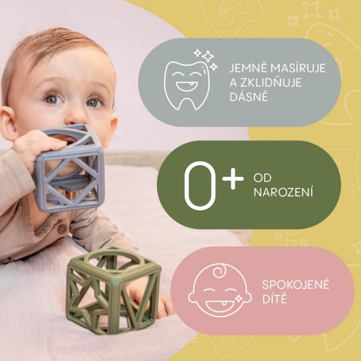 Help je baby door de lastige periode van doorkomende tandjes met de siliconen bijtring Square. De unieke geometrische vorm ligt perfect in kleine handjes en biedt een effectieve tandvleesmassage die ongemak bij doorkomende tandjes verzacht.