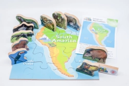 Houten puzzel Zuid-Amerika en zijn dieren - 16 stukjes en 10 dieren