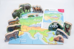 Deze educatieve puzzel is ideaal voor kleine natuurliefhebbers die spelenderwijs basiskennis aardrijkskunde willen opdoen. De set bevat:
