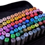 Elke marker heeft twee punten – een fijne van 1–2 mm voor details en lijnen en een afgeschuinde van 3–6 mm voor het inkleuren van grotere vlakken en voor kalligrafie. De set is geschikt voor beginners én gevorderden: van school- en hobbytekenen via productontwerp, manga en illustratie tot architectuurschetsen. Het compacte textielen etui met ritssluiting houdt alles overzichtelijk bij elkaar en maakt gemakkelijk meenemen mogelijk.