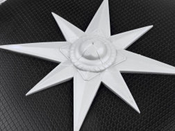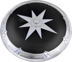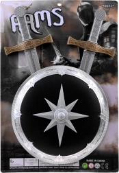 • Inhoud van de set: kunststof zwaard met decoratief handvat en rond schild met stervormig motief