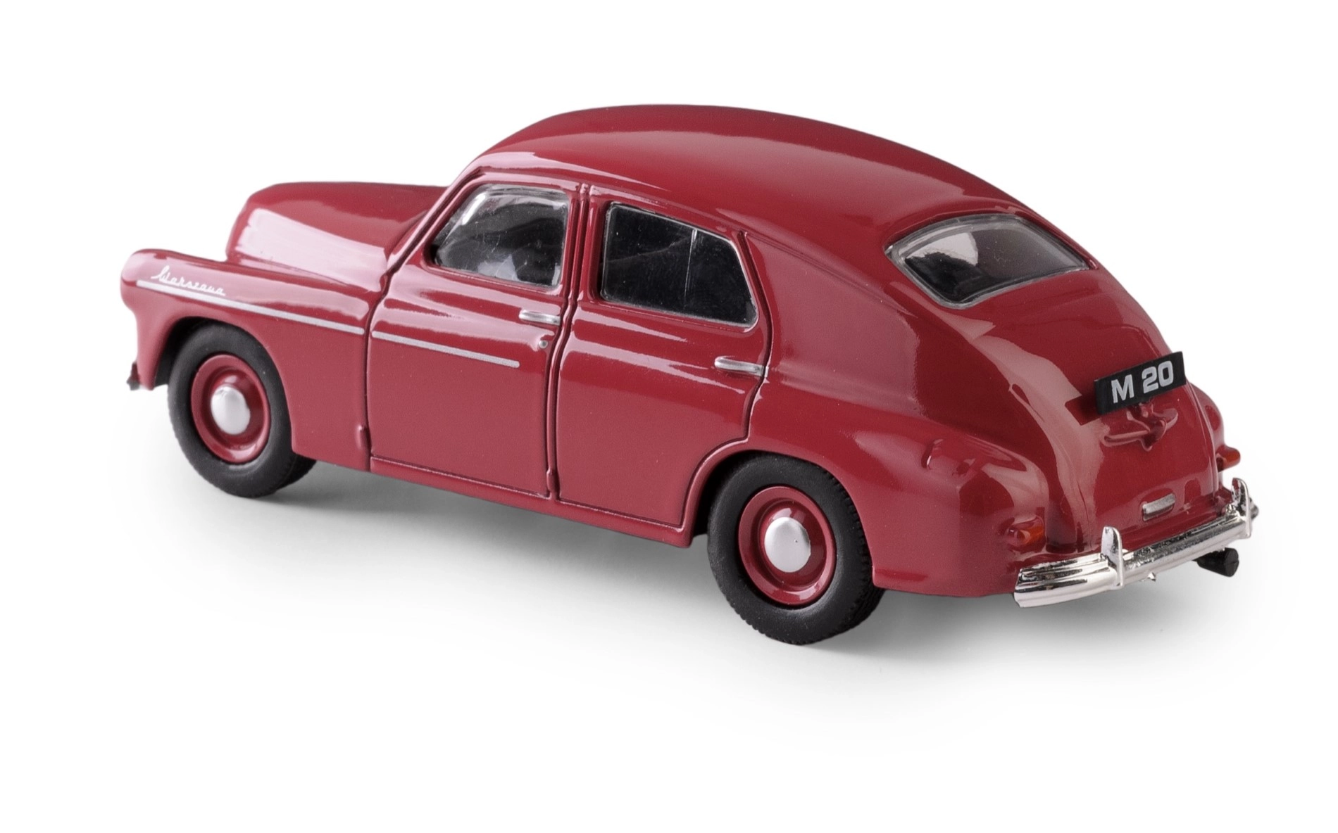 De nauwkeurig gevormde carrosserie met authentieke lijnen en verhoudingen vangt de elegantie van de Warszawa M20 getrouw.