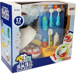 De set bevat ook een oplichtend tandspiegeltje (lichtje wordt geactiveerd door op de knop te drukken), pincetten, twee “boortjes”, een tandenborstel en “tandpasta”. Kinderen kunnen de “zieke” tandjes van het hondje uitnemen en gaatjes behandelen – in de opening kan een kaartje met snoepje/chocolade worden gestopt en vervolgens voorzichtig met de pincet worden verwijderd, zonder de hele tand eruit te hoeven trekken.