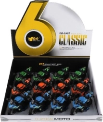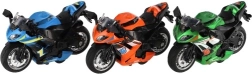 Deze racemotor is ontworpen voor kinderen vanaf 3 jaar en biedt realistische details in drie verschillende kleuren. Het meet 12 x 7 x 6 cm en is gemaakt van een combinatie van metaal en plastic.