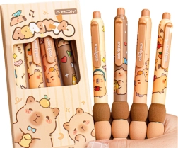 Elke pen is zorgvuldig ontworpen en de elegante afwerking en het vriendelijke capibara-motief geven ze een uniek karakter. Dankzij de ergonomische vorm en de comfortabele grip liggen de pennen perfect in de hand, waardoor ze ideaal zijn voor lang schrijven, schetsen of het maken van aantekeningen.