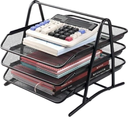De documentorganizer is een praktische en elegante oplossing die helpt om orde te scheppen op uw bureau of in uw werkhoek. Met uittrekbare laden en een metalen constructie bergt u eenvoudig documenten, kantoorspullen en kleine items op. De stevige constructie en rubberen voetjes beschermen uw bureau, terwijl de zwarte kleur voor elegantie zorgt. Ideaal voor iedere plek waar orde en organisatie belangrijk zijn.
