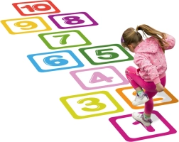 Springen op de genummerde vakken verbetert motoriek en balans – perfect voor het hinkelspel.