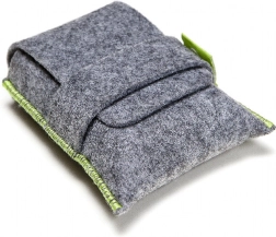 De grijze stoffen zak met limoenkleurige stiksels is ideaal voor het gemakkelijk meenemen van de bouwset. Het stijlvolle en functionele ontwerp beschermt de stukken tijdens het reizen.