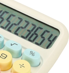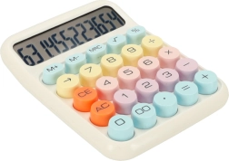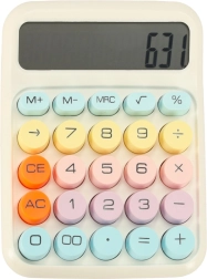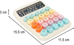 Compacte en stijlvolle rekenmachine met gekleurde ronde knoppen, die het gebruik vergemakkelijken. Ideaal voor kantoor-, school- en huishoudelijke berekeningen.