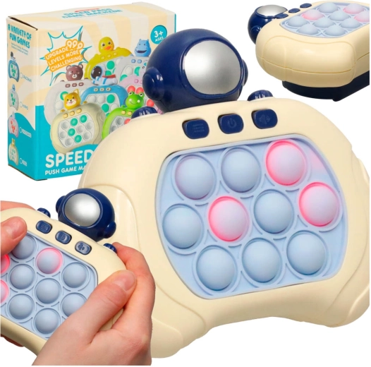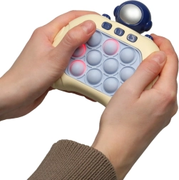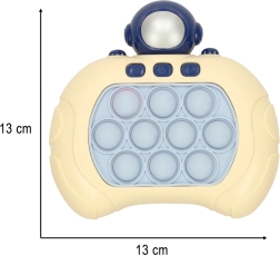 Leuk elektronisch sensomotorisch speelgoed met astronautenthema biedt 4 spelmodi, verlichte pop-it knoppen en een ergonomische vorm voor comfortabel vasthouden. Het traint reflexen, geheugen en fijne motoriek, heeft volumeregeling en een compact formaat van 13 × 13 cm – ideaal voor onderweg en thuis.