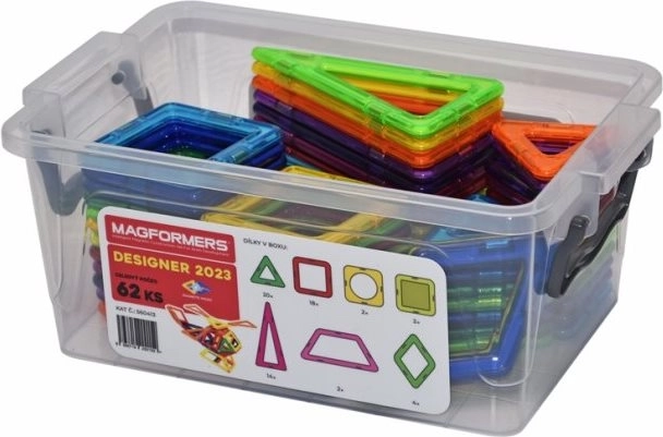 Magformers Designer 2023 komt met een gevarieerd palet aan geometrische vormen, waaronder driehoeken, vierkanten en ruiten. Deze set ondersteunt het modelleren van niet alleen dieren en alledaagse voorwerpen, maar ook abstracte objecten, waardoor elk gebouwd model uniek is. De verpakking bevat: