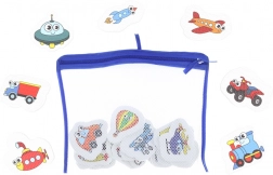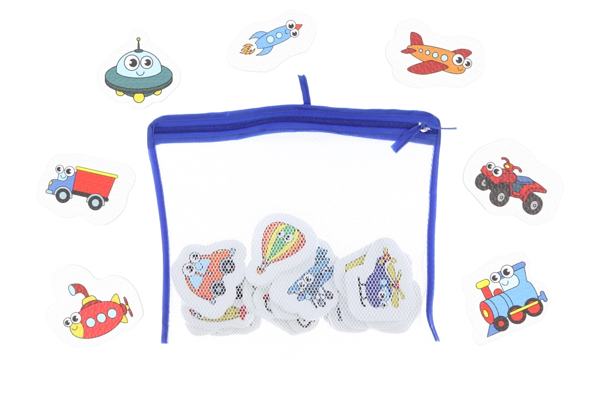 Waterspeelstickers met auto-, trein- en bootmotieven veranderen elk badmoment in een vrolijk spel. Bevochtig ze en druk ze op het bad, de tegels of een ander niet-poreus oppervlak – ze blijven zitten en zijn toch makkelijk los te maken en te verplaatsen. Dankzij de felle kleuren en diverse vormen trainen kinderen tijdens het spelen de oog-handcoördinatie en leren ze vervoermiddelen herkennen.