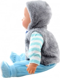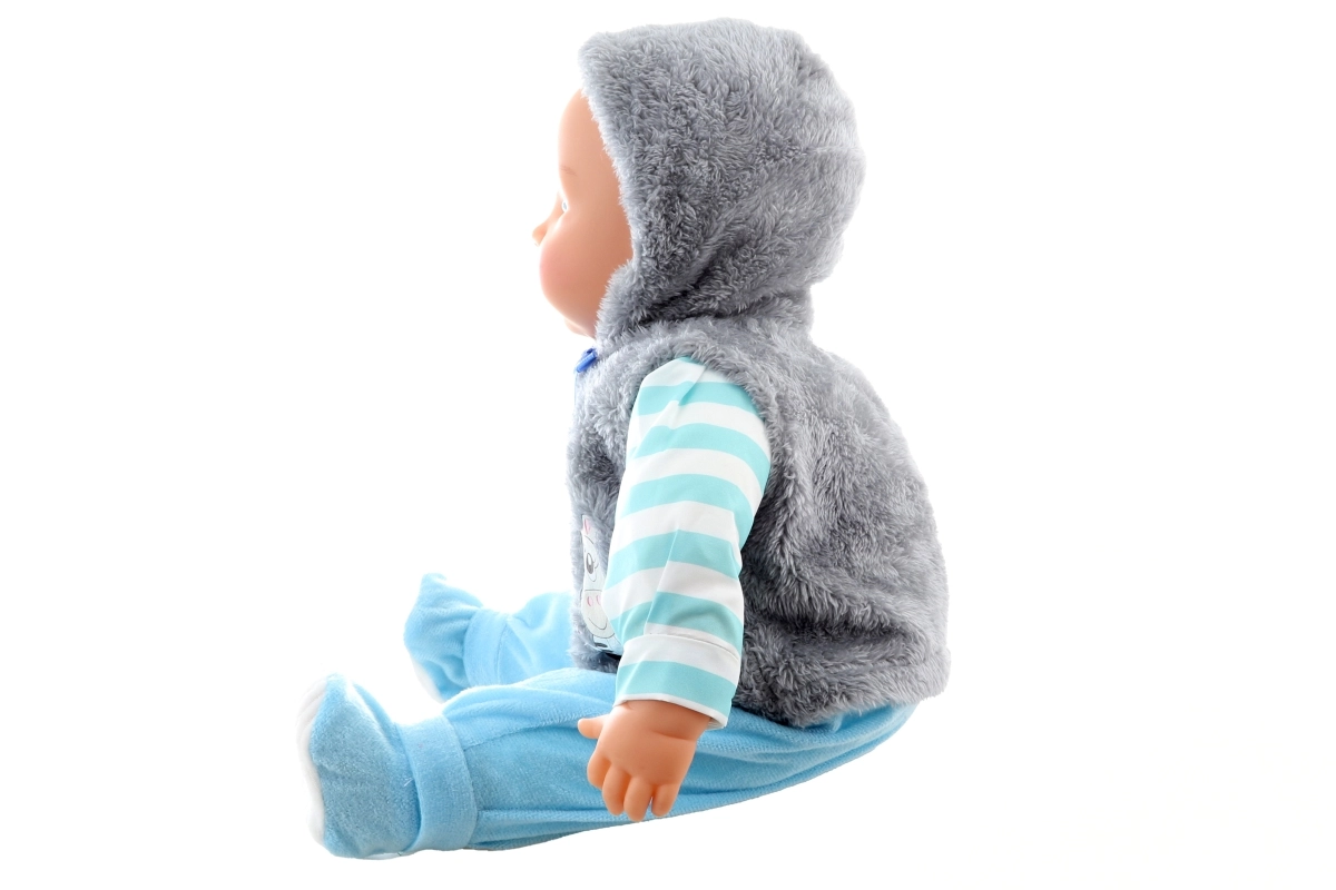 Deze grote babypop – jongetje – is ontworpen voor authentiek zorgzaam rollenspel. Het zachte lijfje nodigt uit om te knuffelen, terwijl het kunststof hoofd en de uiteinden van de ledematen de pop een realistische uitstraling geven. Dankzij het gestreepte shirt, de blauwe broek en het zachte giletje oogt hij als een echt baby’tje dat kinderen graag aankleden en wiegen.