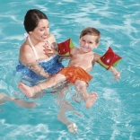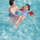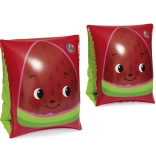 De opblaasbare Bestway-zwemarmbandjes zijn ideaal voor kinderen die leren zwemmen. Twee afzonderlijke luchtkamers zorgen voor betrouwbare drijfkracht, terwijl het zachte en lichte PVC de armbeweging niet beperkt. Het vrolijke ananasmotief en de opvallende kleuren motiveren jonge zwemmers om veilig vertrouwd te raken met water.